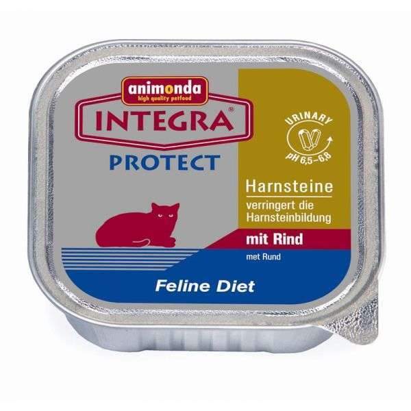 Struvitsteine sind Harn- bzw. Blasensteine, die aus Phosphor, Magnesium und Ammonium bestehen und aufgrund einer genetischen Veranlagung der Katzen entstehen bzw. auftreten können. Da die Bildung von Struvitsteinen durch die Übersättigung des Harnes mit Magnesium begünstigt wird, zielt die Formulierung des Diätfutters INTEGRA® PROTECT Struvit (low magnesium) deshalb darauf ab, durch eine entsprechende Reduzierung des Magnesuim-Gehaltes und harnsäuernder Stoffe dem Wiederauftreten der Struvistein-Bildung entgegen zu wirken (pH-Wert im Katzen-Urin 6,5). Dieses Diätfutter zeichnet sich daher speziell durch gute prophylaktische Eigenschaften aus. Zudem ist die gute Akzeptanz und leichte Verdaulichkeit hervorzuheben. Im Interesse einer optimalen Versorgung sollten Sie Ihrer Katze die Tagesfutter-Ration möglichst auf 3 Mahlzeiten verteilt anbieten. Sie sollten ferner darauf achten, dass sie häufiger Trinkwasser aufnimmt, um durch eine vermehrte Harnausscheidung den erwünschten Spüleffekt der Harnwege zu erreichen.