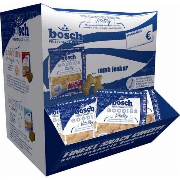 Mit Bosch Vitality-Snacks belohnen Sie Ihren Hund auf gesunde Art und Weise und fördern zugleich seine Vitalität und Beweglichkeit.