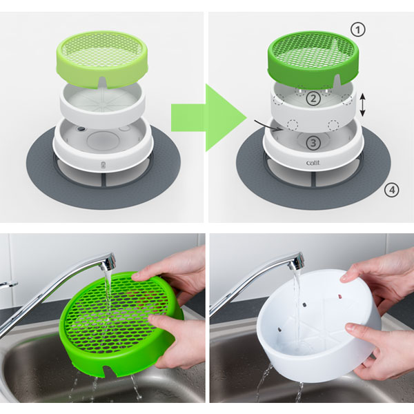 Der Catit Grastopf kann einfach auseinander genommen und gereinigt werden. Waschen Sie am besten jedes Teil mit Neutralseife (ohne Chemikalien oder Scheuermittel) mit der Hand ab und spülen Sie die Teile gründlich.