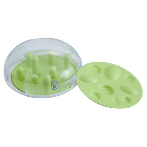 In diesem Leckereien-Labyrinth kann Ihre Katze nach Belieben Futter jagen. Dafür stehen viele Öffnungen zur Verfügung. Mittels zwei austauschbarer Einsätze haben Sie die Möglichkeit verschiedene Schwierigkeitegrade anzubieten und damit für Abwechslung zu sorgen.