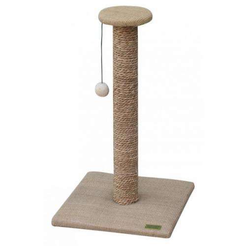 Kleiner Kratzbaum mit einfachem Stamm (ø9cm) und einer kleinen Abschlussscheibe mit Plüschkugel-Spielzeug. Die Bodenplatte sowie die Scheibe sind mit Jute-Strukturstoff besetzt und verklebt. Stamm (ø9cm) mit verklebter Wasserhyazinthenblätter-Wickelung und mit ABS-Hülsen. Die verarbeitete Plüschqualität ist 480g/m². Schadstoffgeprüft.