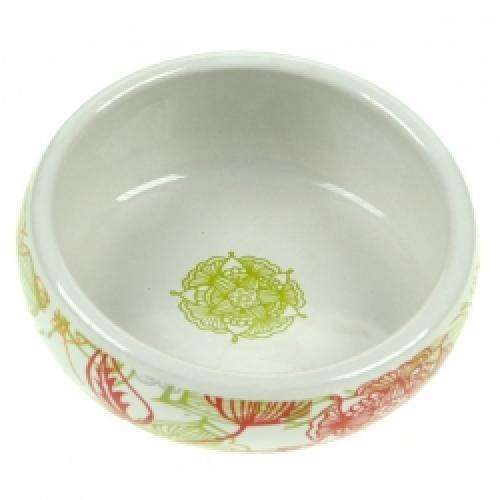 Der Kleintiernapf Retro besteht aus Keramik und ist außen mit einem hübschen floralen Muster im Retro-Look bedruckt. Auch an der Innenseite befindet sich in der Mitte eine niedliche Verzierung.