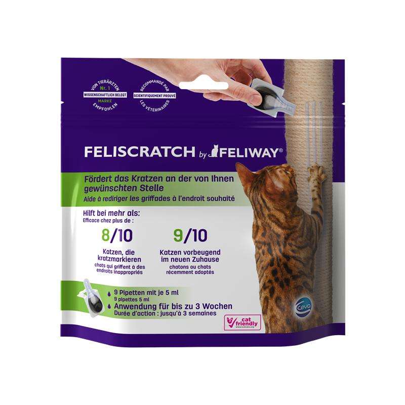 Kratzbaum waagerecht in die Spüle oder auf eine alte Zeitung legen . FELISCRATCH in 2 bis 3 Linien auf dem Kratzbaum auftragen . 5 Minuten trocknen lassen . Kratzbaum dort aufstellen: - wo die Katze kratzt - oder sie zur Ruhe kommt . Nicht auf die Katze auftragen