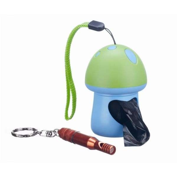 Dieses Anhänger Set besteht aus einem Kotbeutel Spender, Kotbeutel und einem Schlüsselanhänger mit Hundepfeife. Der Kotbeutel Spender in Pilz-Form ist einfach durch die Schlaufe an der Leine zu befestigen. Dieser Spender kann mit handelsüblichen Kotbeuteln gefüllt werden.