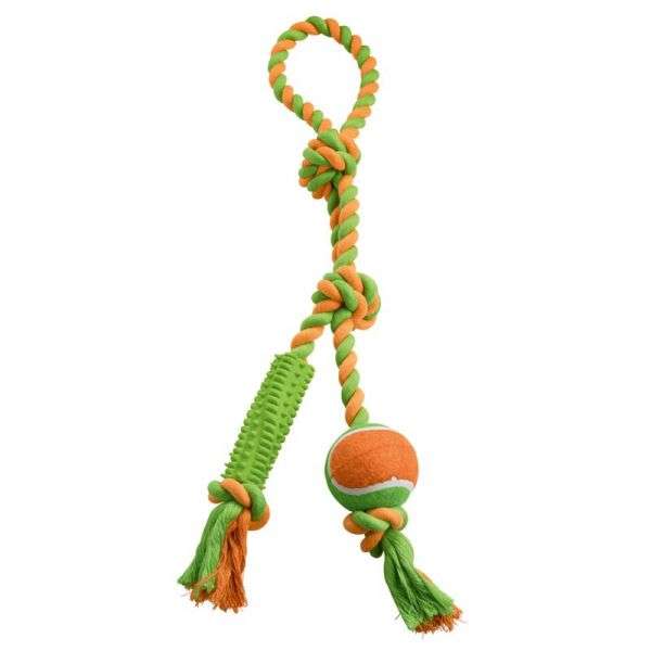 Das Hundespielzeug Cotton Rope Tugger ist hervorragend geeignet für Wurf- und Zerrspiele. Dabei pflegt es zusätzlich die Zähne und bietet daher alles, was das Hundeherz begehrt.