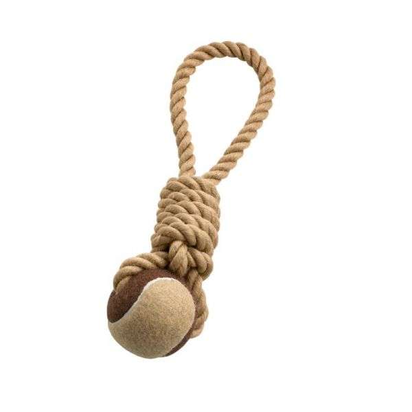 Das Hundespielzeug Rope Loop Tennis ist hervorragend geeignet für Wurf- und Zerrspiele. Dabei pflegt es zusätzlich die Zähne und bietet daher alles, was das Hundeherz begehrt.