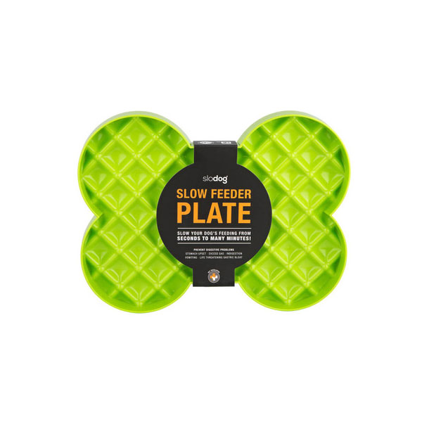 Die meisten Anti-Schling-Näpfe arbeiten mit Hindernissen oder labyrinthartigen Strukturen, um es dem Hund zu erschweren, zum Futter zu gelangen. Der Hund muss tatsächlich das Essen durch den Napf jagen, um zu essen. Dies kann für den Hund extrem frustrierend sein und Stress und Angst im Tier verursachen. SloDog verfolgt einen einzigartigen Ansatz zur langsamen Fütterung. Durch den Wechsel von einer Schale zu einer größeren Platte steht dem Fütterungshund eine viel größere Fläche zur Verfügung. Alles Essen ist in Sichtweite und muss nicht gejagt werden, um Frustration zu vermeiden. Wir haben einfach ein Gerät entworfen, das die Mahlzeit in Multi-Mini-Mahlzeiten aufteilt, indem Sie das Maß in viele kleine flache Mulden verteilen. Der Hund isst einfach eine Mini-Mahlzeit nach der anderen. Wenn der Hund versucht, aus zwei Mulden gleichzeitig zu essen, fällt das Futter einfach aus dem offenen Mund des Hundes.