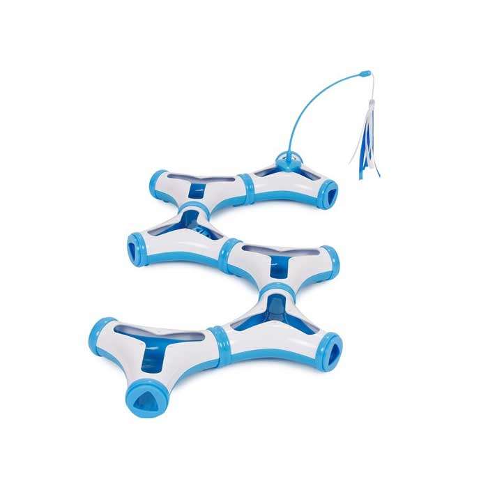 Das Cat Connected 6 besteht aus 6 Einzelteilen, die nach Belieben und immer wieder neu miteinander verbunden werden können. So entstehen stets neue Formen und das Spiel wird nie langweilig. Im Inneren der aufgebauten Rohrleitung befindet sich eine Kugel, die nur darauf wartet von Ihrer Katze angetippt zu werden, um dann durch die Leitungen zu rollen und immer wieder aufs Neue zum Spiel anzuregen. Die ebenfalls vorhandene Spielantenne bietet zwischendurch etwas Abwechslung.
