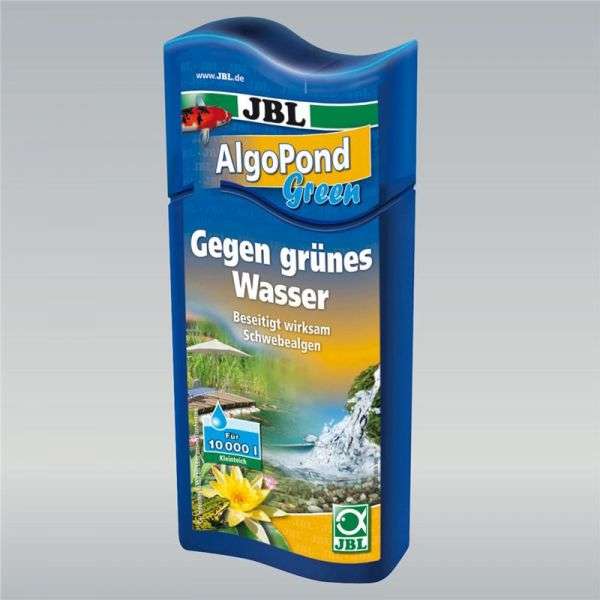 Neben den bisherigen JBL AlgoPond Produkten hat die JBL Entwicklungsabteilung nun mit JBL AlgoPond Green* ein spezielles und damit hochwirksames Mittel gegen Schwebealgen (Gruenes Wasser) in Gartenteichen entwickelt. Ein gezielt wirkendes Algizid bekaempft die Schwebealgen, ohne das biologische Gleichgewicht des Teiches anzugreifen. Die abgetoeteten Algen sowie das Algizid werden bakteriell anschließend im Teich abgebaut. Algizide sollten immer morgens angewendet werden, weil sie nur bei pH-Werten unter 8,0 ihre volle Wirksamkeit entfalten und der pH-Wert im Tagesverlauf ansteigt. Dosierung: 25 ml / 1000 l. * N umweltgefaehrlich.