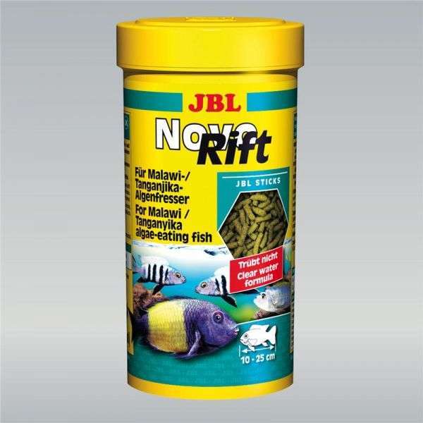 JBL NovoRift enthaelt ueberwiegend ausgewaehlte pflanzliche Rohstoffe in speziell angepaßter Kombination, die in besonderer Weise dem Ernaehrungsbeduerfnis der Aufwuchs fressenden Cichliden aus den ostafrikanischen Grabenseen entspricht. JBL NovoRift wird dank der Darreichungsform als kleine Sticks besonders leicht und gern aufgenommen. Wertvolle Vitamine, ungesaettigte Fettsaeuren und Carotinoide staerken die Widerstandskraft und sorgen fuer ein gesundes Wachstum und kraeftige Farben.
