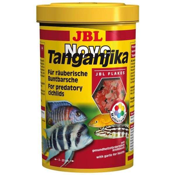 JBL NovoTanganjika ist in seiner Zusammensetzung auf die artspezifische Ernaehrungsweise raeuberischer Buntbarsche aus dem Malawi- und Tanganjikasee abgestimmt. Hochwertige Proteine aus Fisch, Shrimps und anderen Wassertieren sowie leicht verdauliche Fette als Energietraeger sorgen fuer gesundes Wachstum bei optimaler Energieversorgung. Knoblauch (1 %) foerdert die Gesundheit. Wertvolle Carotinoide, lebenswichtige Vitamine und Naturextrakte sorgen fuer die Ausbildung natuerlicher Farbenpracht und staerken die Widerstandskraft gegen Krankheiten.