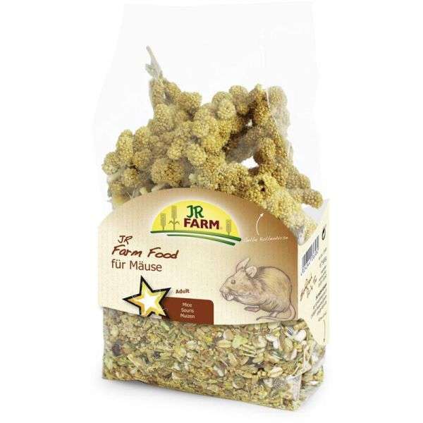 Speziell für Mäuse wurde JR Farm Food mit Stücken von Kolbenhirse und Weizenähren verfeinert.