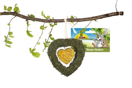 Außen knackig, innen knusprig: Das getreidefreie Kräuterherz wird umrahmt von einem mit Heu ummantelten Herz aus Naturholz. Doppelter Nagespaß und Langzeitbeschäftigung garantiert!