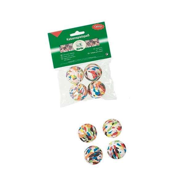 Katzen lieben Ballspiele. Viel Spielvergnügen versprechen diese bunt-gemusterten Bälle.