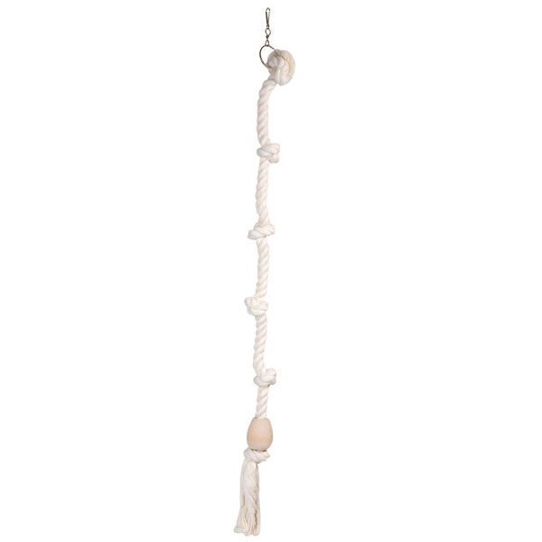 Das 100 cm lange Spielseil Tarzan wird im Käfiggitter eingehangen und bietet dort jede Menge Spiel- und Kletterspaß. Ein Muss in jedem Käfig! Mit Holzkugel.
