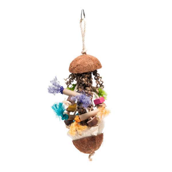 Spielspaß und lange Beschäftigung für Papageien verspricht dieses große Vogelspielzeug, das aus verschiedenen Naturmaterialien besteht.
