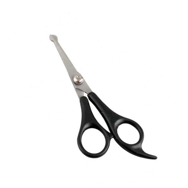Diese Pflegeschere aus Edelstahl mit Kunststoffgriff eignet sich ideal zum Ausdünnen und Stylen der Haare an Ohren, Nase und Pfoten. Die abgerundeten Spitzen schützen dabei vor Verletzungen.