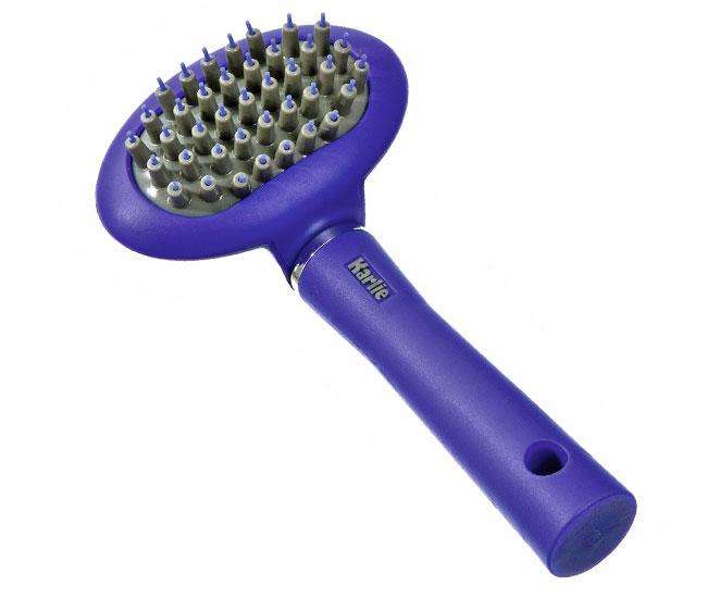 Blaue Glanzpflegebürste für Katzen mit langem Fell aus der Karlie Perfect Care Pflegeserie.