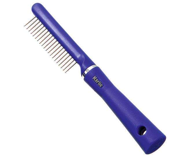 Blauer Entwirrungskamm mit rotierenden Zähnen für Katzen aus der Karlie Perfect Care Pflegeserie.