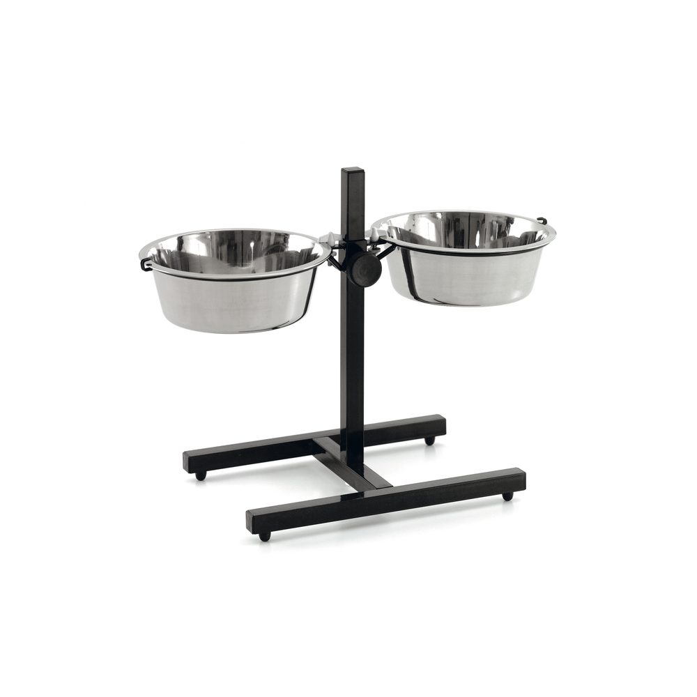 Dieser Futternapfständer für zwei Näpfe ist stabil und leicht in derHöhe verstellbar. Durch das erhöhte Fressen werden Gelenke geschont undMuskeln entspannen. Die Lieferung erfolgt mit zweiEdelstahlnäpfen. Höhenverstellbar bis 60 cm.
