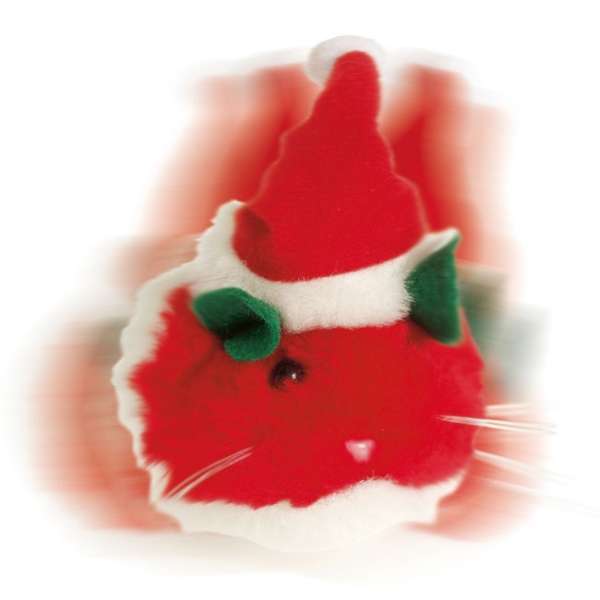 Weihnachtliche Maus aus Plüsch. Dieses Zitterspielzeug lässt garantiert keine Katze kalt! Einfach mit dem Band aufziehen und schon kommt Bewegung ins Spiel.