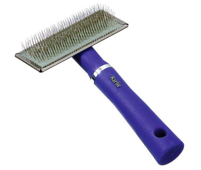 Blaue Softzupfbürste für Langhaarkatzen und krauses Fell aus der Karlie Perfect Care Pflegeserie.