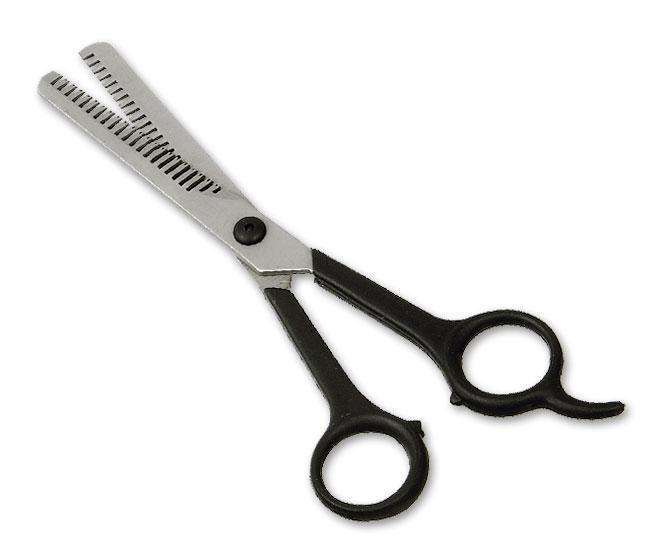 Zweiseitige Effilierschere aus eisgehärtetem Stahl mit Schwarzem Kunststoffgriff aus der Karlie Perfect Care Pflegeserie. Für Hunde mit langem und drahtigem Fell.