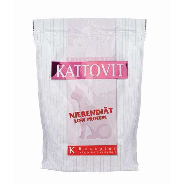 Kattovit Feline - LOW PROTEIN - versorgt die Katzen mit einem reduzierten Eiweißgehalt. Hohe Eiweißgehalte können sich schädigend auf die Nieren auswirken. Entscheidend ist dabei der Proteingehalt bezogen auf die Energiemenge. Bei Kattovit LOW PROTEIN wird, im Gegensatz zu herkömmlichem Futter, nur etwa die Hälfte der Energie durch Eiweiß erbracht.