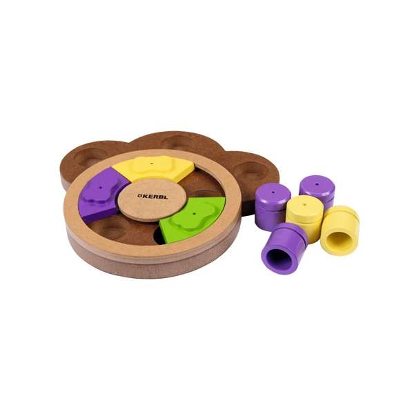 Paw ist ein besonderes Spielzeug, das Spaß und Strategie miteinander verbindet. In das Spielbrett sind Vertiefungen eingearbeitet. In diesen Vertiefungen werden Leckerlies versteckt, die Ihr Hund versucht aufzuspüren. Nach einer gewissen Übungszeit gelingt es ihm, die lackierten Holzkegel anzuheben und die Schiebedeckel mit seiner Nase oder seinen Pfoten zu öffnen und sich die Belohnung zu erobern.