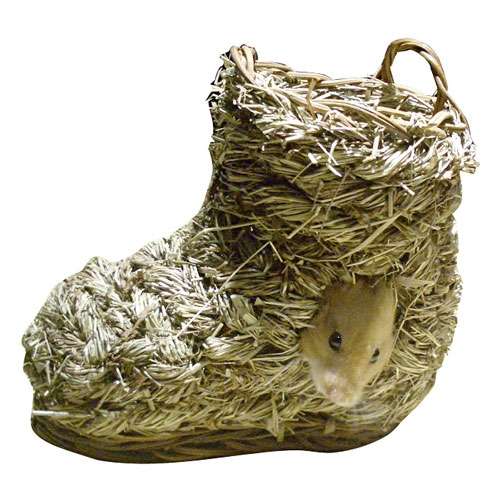 Häuschen in Schuhform aus natürlich getrocknetem Gras. Kann als Unterschlupf, Nest oder Spielplatz für Hamster, Mäuse und andere kleine Tiere genutzt werden. Der Grasschuh ist selbstverständlich zum Verzehr geeignet und frei von gefährlichen Draht- oder Kunststoffteilen.
