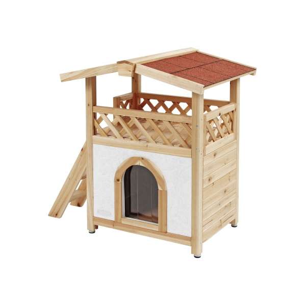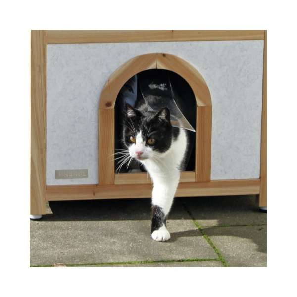 Durch die doppelten Wände im unteren Schlafbereich, welche mit Styropor ausgekleidet sind, ist das Katzenhaus für Sommer und Winter geeignet. Der transparente Lamellenvorhang schützt gegen Wind und Wetter. Die Aussichtsplattform ist über die seitliche Treppe einfach zu erreichen und bietet Ihrer Katze einen erhöhten Liegeplatz. Das Katzenhaus ist einfach und schnell durch das Stecksystem und die Aufbauanleitung zu montieren.