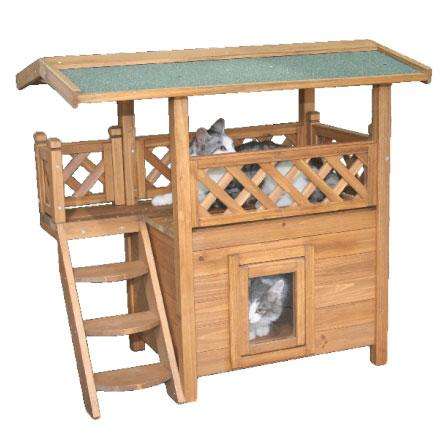 Nach einer anstrengenden Mäusejagd gibt es nichts Entspannenderes, als sich in die stilvolle Katzen-Lodge zurückzuziehen. Hier ist Ihr Samtpfötchen vor Regen und Kälte geschützt. Die Terrasse ist nicht nur ein brillanter Beobachtungsplatz, das große wetterfeste Bitumendach bietet erstklassigen Sonnenschutz an heißen Tagen.
