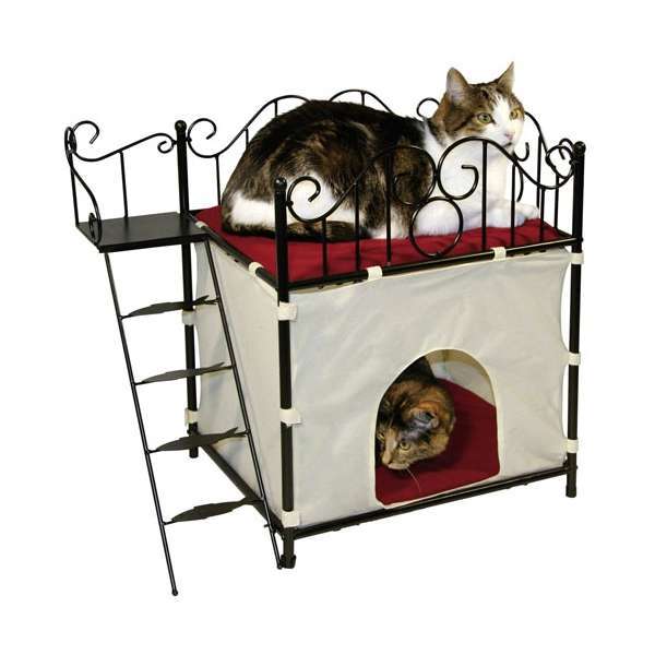 Das Katzenhäuschen Diva besteht aus einem schwarzen Metallgestell und ist blitzschnell zusammengebaut.