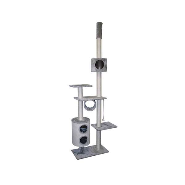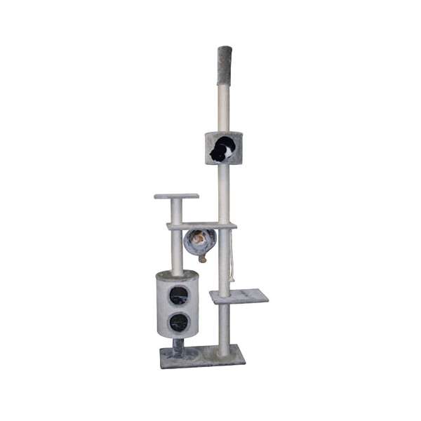 Ein Sisal-Seil das am Baum befestigt ist, bereitet Ihrem kleinen Stubentiger Spielvergnügen. Der Deckenspanner, der ebenfalls mit Plüsch bezogen ist, ermöglicht ein Aufstellen des Baumes in Räumen von 230 bis 248 cm Deckenhöhe.