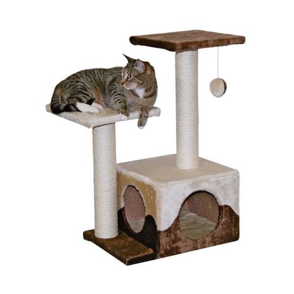 Der Kerbl Kratzbaum Saphir hat eine Grundfläche von 44 x 34 cm (BxT) und eine Höhe von 70 cm. Durch die neue Farbgebung in braun-sand, gliedert sich der Kratzbaum perfekt in jede Wohnumgebung ein. Die kuschelige Höhle mit einer Größe von 33 x 33 x 22 cm bietet Ihrer Samtpfote ein gemütliches Schlafplätzchen. Der Stammdurchmesser beträgt 8 cm, der Sisal ist an der Säule verklebt. Damit es nicht langweilig wird, ist der Krazubaum außerdem mit einem Plüschball am Gummiband ausgestattet.