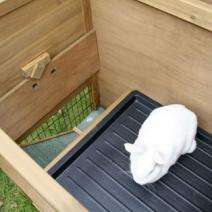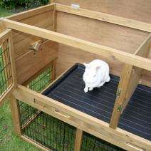 Das Nagerhaus La Vita ist mit hochwertigen Gitterelementen bestückt. Die 4 Türen des Stalles (2 oben und 2 in den unteren Gitterelementen) lassen sich getrennt voneinander öffnen. Eine praktische Kunststoffwanne zum Herausziehen erleichtert die Reinigung. Der integrierte Unterfreilauf ist verschließbar, so können Sie ganz einfach festlegen, wann Ihre Tiere Freilauf haben sollen. Über einen Durchschlupf gelangen die Tire zum integrierten Ruheraum. Das wetterfeste Bitumendach mit Dachfixierung, sowie die Holzschutzfarbe, mit der der Stall von außen lasiert ist, schützen ihn vor Regen und Wettereinflüssen.