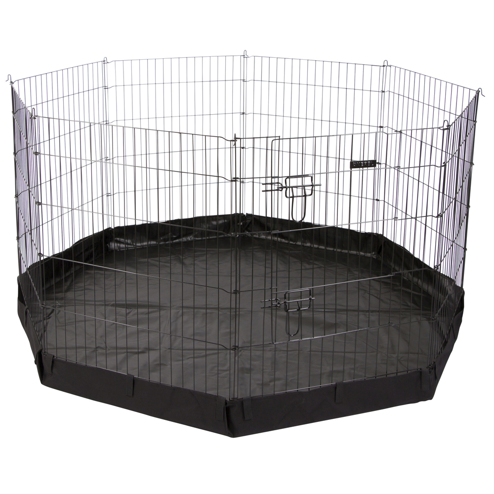Der Boden ist geeignet für alle Freigehege, die aus 8 Elementen bestehen, die jeweils eine Breite von ca. 57 cm haben, z. B. Kerbl Freigehege 8-eckig (AK-82708) oder Kerbl Welpengehege (AK-81715).