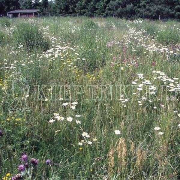 Anthoxanthum odoratum 5 %, Brachypodium pinnatum 2 %, Briza media 3 %, Bromus erectus 2 %, Bromus mollis 5 %, Cynosurus cristatus 10 %, Festuca trachyphylla 20 %, Festuca rubra commutata 10 %, Festuca rubra rubra 10 %, Koeleria pyramidata 1 %, Trisetum flavescens 2 %, Achillea millefolium 0,5 %, Agrostemma githago 2 %, Anthemis tinctoria 1,5 %, Campanula glomerata 0,2 %, Centaurea cyanus 1,5 %, Centaurea scabiosa 1,5 %, Daucus carota 1,5 %, Dianthus carthusianorum 1,5 %, Galium verum 0,5 %, Hypericum perforatum 1,5 %, Knautia arvensis 1 %, Leontodon hispidus 0,5 %, Leucanthemum vulgare 1,5 %, Lotus corniculatus 0,3 %, Malva moschata 1,5 %, Onobrychis viciifolia 1,5 %, Origanum vulgare 1 %, Papaver rhoes 1 %, Pimpinella saxifrage 1,5 %, Salvia pratensis 2 %, Sanuisorba minor 2,5 %, Silene vulgaris 1 %, Thymus pulegoides 0,7 %, Tragopogon pratensis 1,8 %