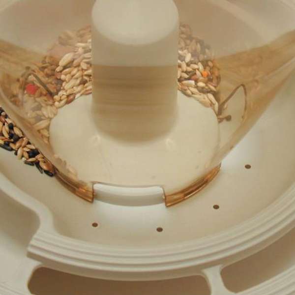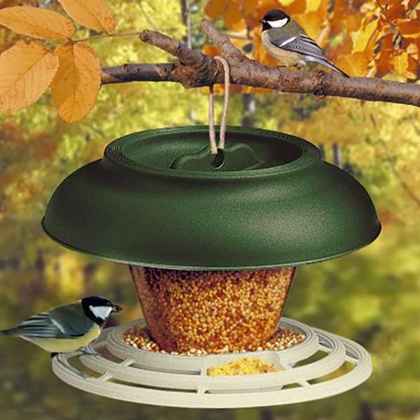 Dieses Futterhaus für Wild- oder Volierenvögel bietet einen regengeschützten Futterplatz. Das abnehmbare Dach erlaubt ein bequemes Befüllen mit Körnerfutter, das je nach Bedarf nachrutscht. Die rundherum angebrachte Sitzstange erlaubt ein gleichzeitiges Fressen auch vieler Vögel.