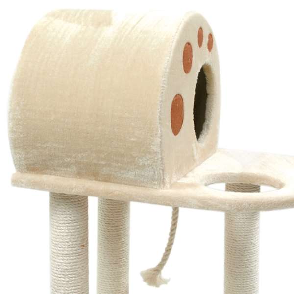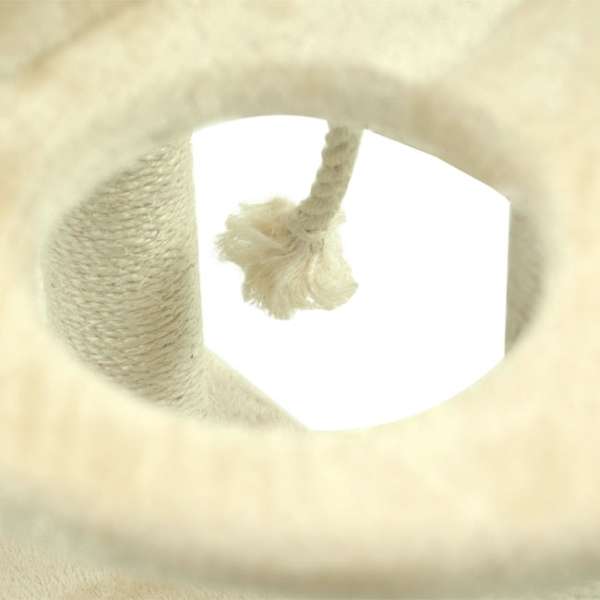 Er besteht aus einer Bodenplatte mit den Maßen ca. 40 x 58 cm (BxT), einer Platte in der gleichen Größe, die mit einem Loch ausgestattet ist (ca. 15,5 cm Durchmesser), drei Sisalstämmen mit einem Durchmesser von ca. 7 cm und einer gemütlichen Höhle als Rückzugs- und Schlafgelegenheit. Die Höhle hat Außenmaße von ca. 41 x 31,5 x 30 cm (BxHxT) und ein Eingangsloch mit einem Durchmesser von ca. 18 cm. Zusätzlich ist ein Sisalseil vorhanden, welches sich super zum Spielen eignet. So hat Ihr Stubentiger alles, was er benötigt: Kratzmöglichkeit, gemütliche Schlafmöglichkeit und Spielspaß!