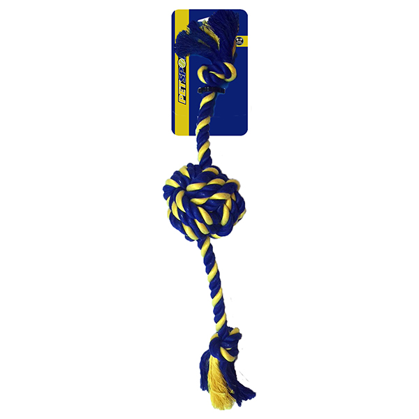 Geflochtenes Seil gefertigt aus starker, "1st class" Baumwolle. Es gibt viele Seilspielzeuge für Hunde auf dem Markt, jedoch wenige so gut wie dieses! Die blau/gelbe Farbe kann Ihr Hund z. B. auf Rasen besonders gut erkennen.
