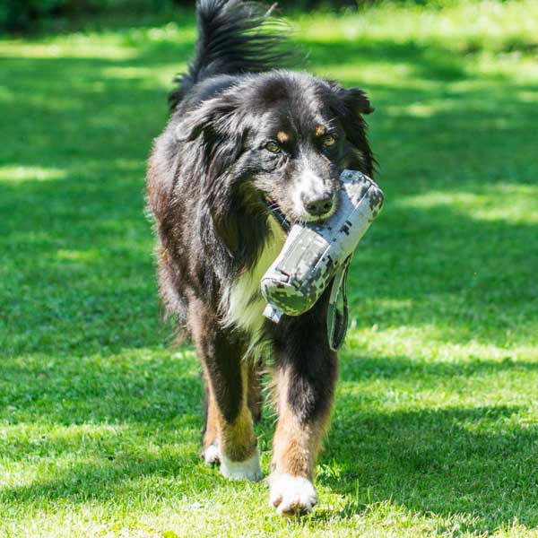 Der Dummy ist schwimmfähig und kann so auch für die Wasserarbeit genutzt werden. Mit Handschlaufe.