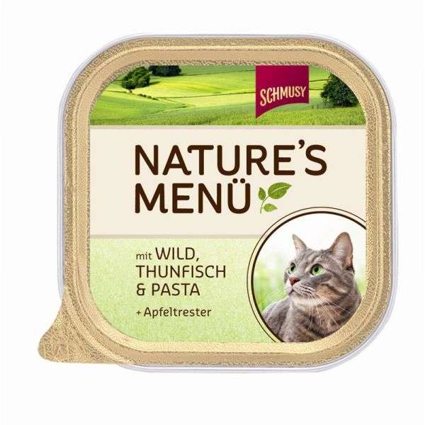 Die funktionelle Zutat in SCHMUSY NATURES MENÜ mit Wild, Thunfisch & Pasta ist Apfeltrester mit Ballaststoffe für die gesunde Magen-Darm-Passage.