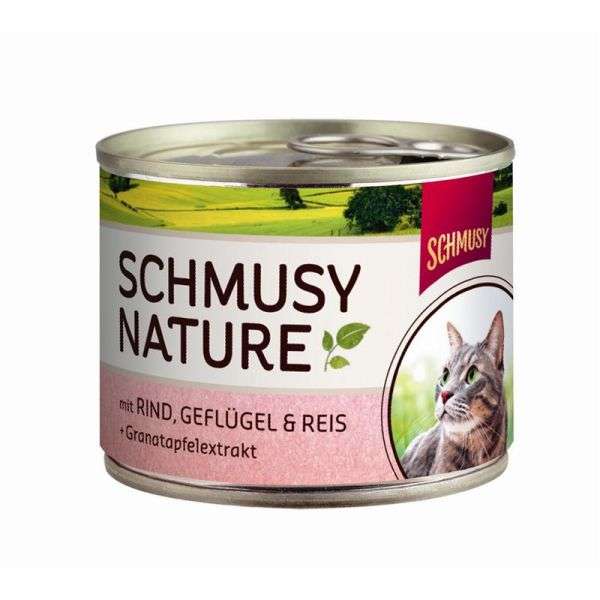 Schmusy Natures Menü - mit Rind, Geflügel, Reis & Granatapfelextrakt