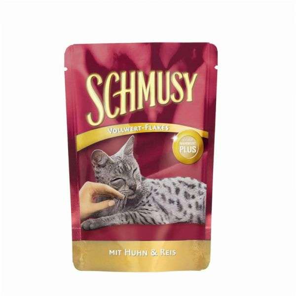 Schmusy Vollwert-Flakes sind leckere Fleischstückchen in feiner Sauce - nahrhaft mit ausgesuchten Rohwaren und mit Reis.