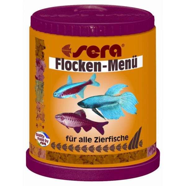 Das sera Flocken-Menü enthält vier hochwertige Futtersorten zum Verwöhnen Ihrer Zierfische.