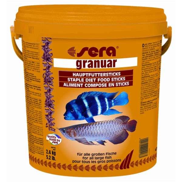 Große, schnell aufweichende Futtersticks mit einem hohen Anteil an Fischprotein für große Fleisch fressende Cichliden und Arowanas. Wertvolles Fischöl und antarktischer Krill liefern die Extraportion Energie durch essenzielle Omega-3 Fettsäuren. Alleinfuttermittel für Arowanas, Großcichliden, Knochenhechte, Riesenguramis und andere Großfische Verwendungshinweise: Mehrmals täglich sparsam füttern, nur so viel, wie die Tiere in kurzer Zeit aufnehmen. Zusammensetzung: Fischmehl, Maisstärke, Weizenmehl, Krillmehl, Fischöl, Brauereihefe, Brennnessel, Luzerne, Kräuter, Grünlippmuschelmehl, Seealgen, Paprika, Spinat, Petersilie, Spirulina, Karotten, Knoblauch. Gefärbt mit EG-Zusatzstoffen. Qualitätsanalyse: Rohprotein: 36,0%, Rohfett: 5,7%, Rohfaser: 2,5%, Rohasche: 6,6%, Feuchtigkeit: 5,2% Zusatzstoffe, Vitamine und Provitamine pro kg Vit. A: 30000 IU, Vit. B1: 30 mg, Vit. B2: 90 mg, Vit. C: 550 mg, Vit. D3: 1500 IU, Vit. E: 60 mg