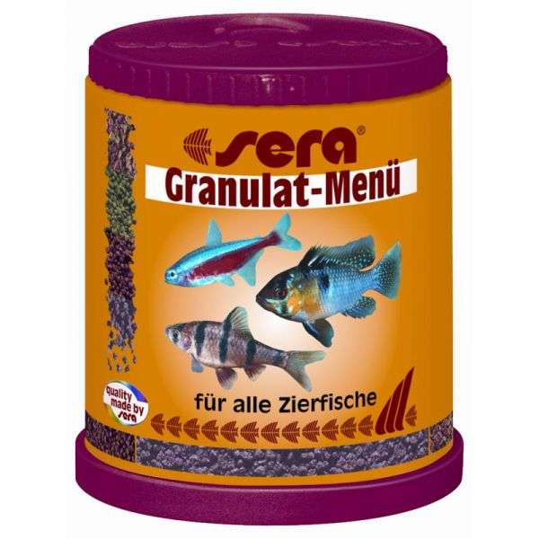 Das sera Granulat-Menü bietet allen Fischen der mittleren und tieferen Wasserschichten die artgerechte Futteraufnahme und sorgt für Gesundheit und Vitalität ihrer Zierfische.