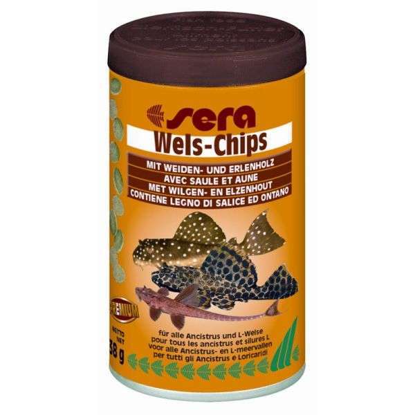 speziell für diese prächtigen Aquarienfische gibt es nun sera Wels-Chips mit Weidenrinden- und Erlenholz-Anteilen.