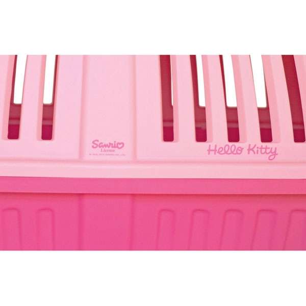 Mit rosafarbener Ober- und pinker Unterschale bringt die Hello Kitty-Transportbox Mädchenaugen zum Strahlen! Über dem Einstieg befindet sich außerdem ein niedliches Hello Kitty-Motiv.
